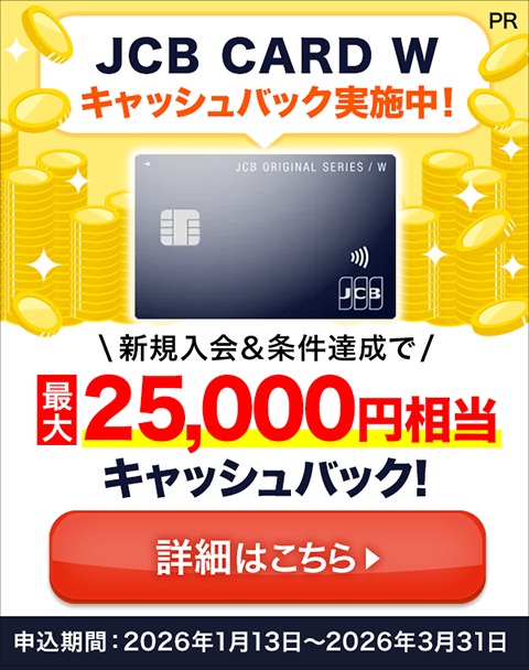 | 新規入会&条件達成で最大25,000円相当キャッシュバック!※2026年3月31日まで | 最大15,000円キャッシュバック! | |